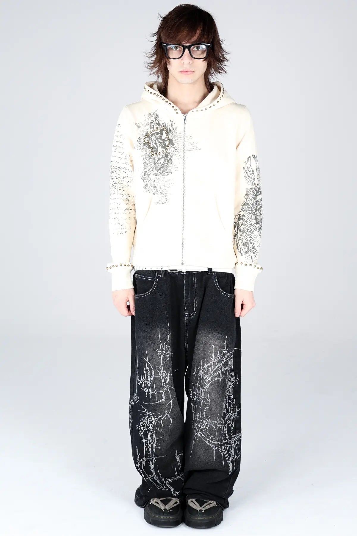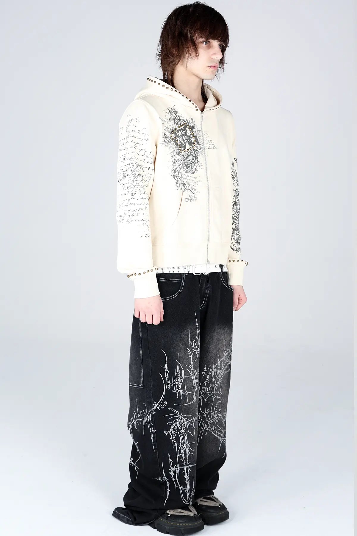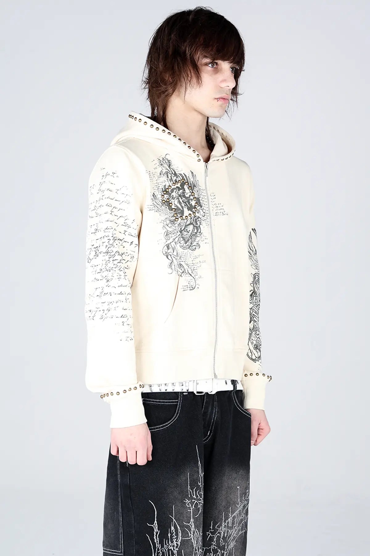 Heavyweight cotton zip-up built for long-lasting comfort and everyday wear. Relaxed fit with a durable screen print made to hold up and stand out.