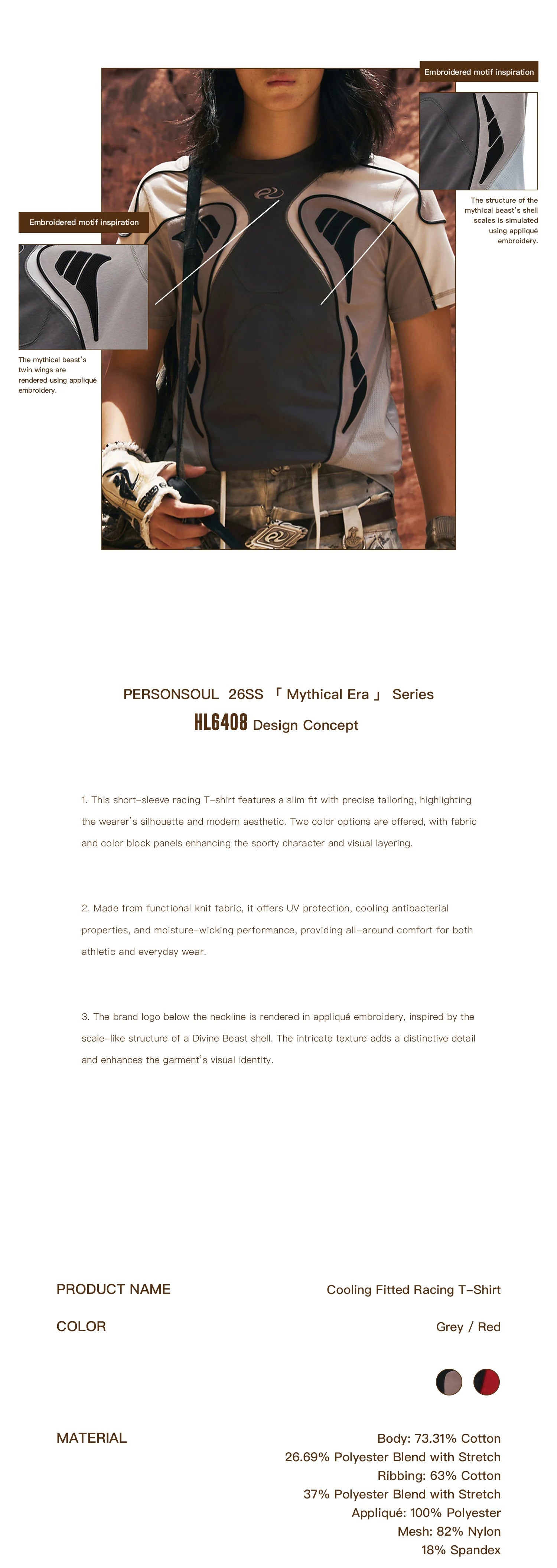 Personsoul Cooling Fitted Racing T-Shirt Gray