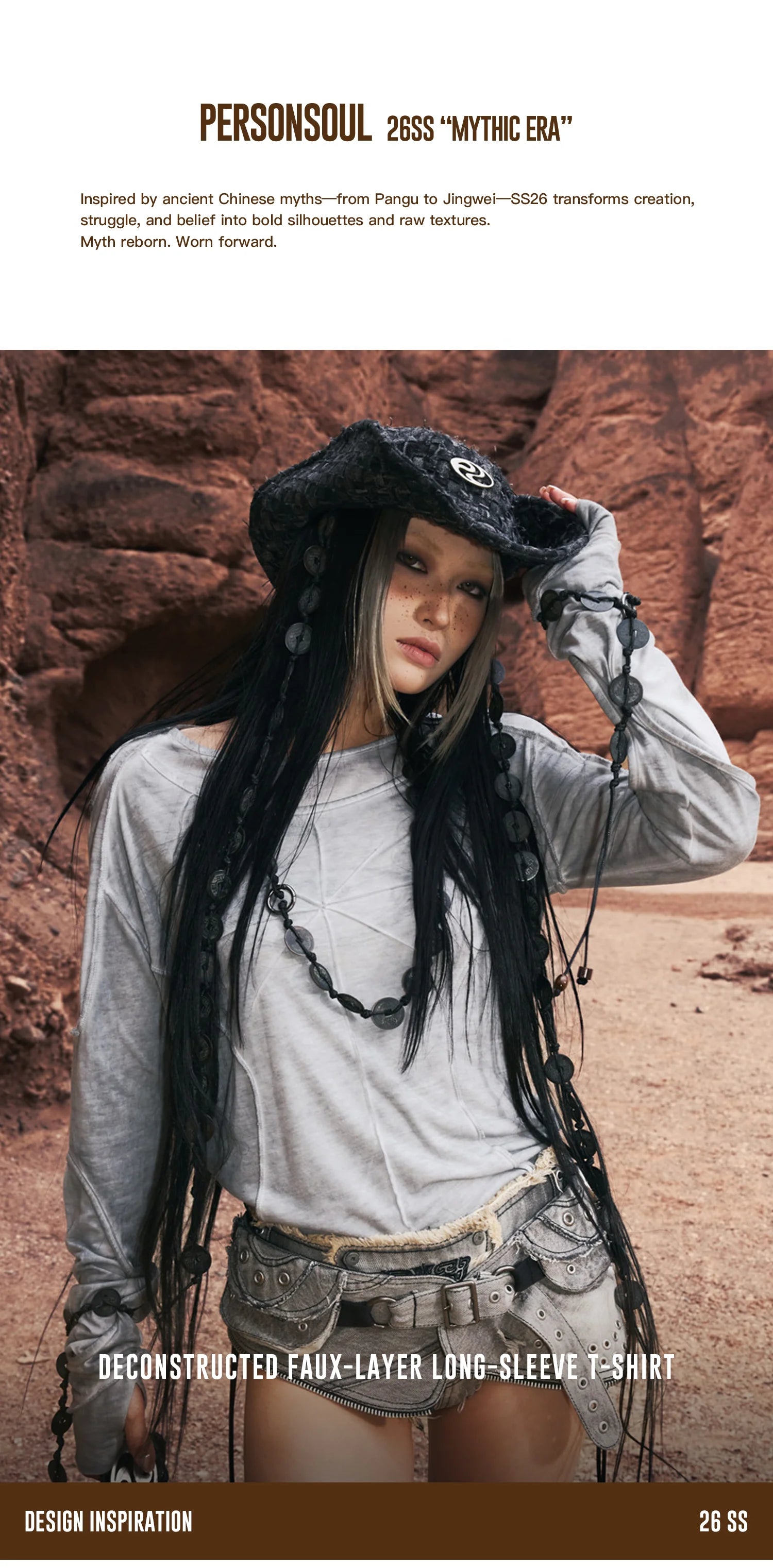 Personsoul Deconstructed Faux-Layer Long-Sleeve T-Shirt In Brown