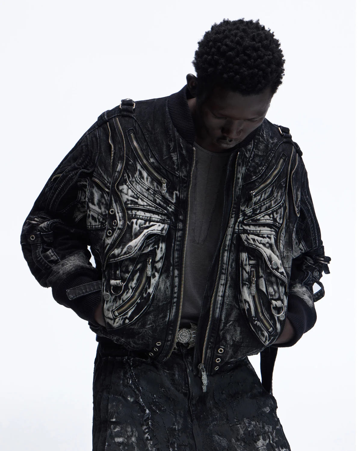 Orrienly™ Deconstructed & Washed Denim Utility Jacket